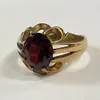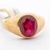 A synthetic ruby and 9ct gold ring, set with an oval synthetic ruby, width approx 13mm, size V, total gross weight approx 9gms Further details: good all stone present, wear and tear commensurate with