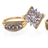 yellow 9ct gold tanzanite and zircon crossover dress ring