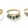 A collection of six Gemporia stone set 9ct gold rings to include a yellow gold mounted three stone tanzanite ring set with pear cut tanzanite's, size R1/2, with certificate, along with a diamond set c…