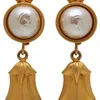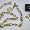 A pair of Chanel style "handbag" drop earrings, in a Chanel box together with a faux pearl gilt metal belt with double 'C' monogram. (2)
