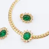 Christian Dior- a vintage paste set 'emerald' gilt metal necklace along with a matching pair of clip on earrings, approx length 15mm, both marked Chr Dior Germany along with original box. Further det