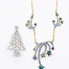 Butler & Wilson- a Christmas themed lot, comprising a crystal set Christmas tree brooch, height approx 60mm, along with a Celestial stars necklace se with blue crystals, along with a branded presentat…