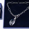Swarovski: a boxed crystal pendant suspended from a white metal chai, pendant length approx 55mm, along with a boxed crystal set dress halo ring, width approx 14mm, size R, with original sales tag and…