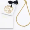 A Dior gold tone necklace set with stone, together with a La Rose on ribbon within booklet.