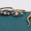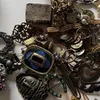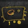 Roberta Cavaila gold tone jewellery set to include large link necklace with various charms including stone set Skulls, stone set skull and snake ring & expanding snake bracelet with enamelled scale ef…