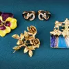 A collection of costume jewellery to include vintage and later paste set brooches, various earrings including gold and white metal drop and studs in various designs, paste and enamel, with both clip a…