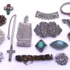 A selection of Costume Jewellery. To include an Unmarked White Metal Indian Design Nurses Belt Buckle, a Ladies Sekonda watch, a Crucifix Pendant on a Sterling Silver chain and brooches. Most of the