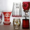 group of six Bohemian flashed glass spa beakers