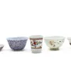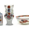 group of opaque white and enamelled glass items
