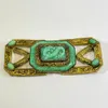A Czechoslovakian buckle with central jade effect dragon design. 7cm x 1cm x 3cm. Condition: 2 small chips - one to Dragons foot and one to roundel. Otherwise good.
