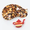 Lea Stein - a stylish lucite brooch in the form of a sleeping Cat, in mottled brown colourway with white eyes and ears, with LEA STEIN, PARIS V shaped clasp to reverse, approx. 7.5cm wide. Along with