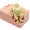 A novelty Michelin Bakelite employees money box, modelled as a seated Mr Bibendum to pink base, approx. 13cm high x 15.4cm wide x 10cm deep. Further details: generally good, scratching to areas, marks…