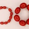 Cherry bakelite/amber type oval beads, largest approx 23x18mm, smallest approx 7 x 5mm, weight approx 57gms Further details: wear and tear commensurate with age