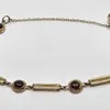 A 9ct. gold and red paste set bracelet, fashioned from pierced rectangular links alternating circular links rub-over set single round cabochon red paste within wire work border. (gross weight 7.5g)