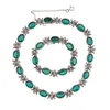 white metal and mauve paste necklace and bracelet set