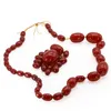A collection of three Cherry Bakelite/plastic type bead necklace, comprising one graduated oval bead necklace, largest bead approx 28 x 19mm, along with a round faceted graduated bead necklace, larges…