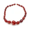 An cherry Bakelite type bead necklaces, comprising oval beads, measuring from 10mm - 20mm, plated clasp, length approx 41cm, total gross weight approx 24.5gms Further details: no visible chips, requir…