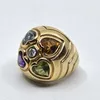 A Bulgari 18ct gold vintage multi gem ring, of domed form, collet set round brilliant cut diamond to centre with rub-over set four heart-shaped mixed cut gem stones; blue topaz, citrine, amethyst and …