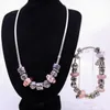 Pandora Sterling Silver Charm Bracelet and Pandora Sterling Silver Charm Necklace The Pandora Sterling Silver Charm Bracelet charms include Pink Murano Glass Charms. The Charm Bracelet measures appro