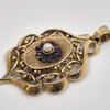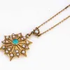 9ct gold Edwardian sapphire and seed pearl openwork floral pendant