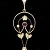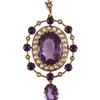 Edwardian 9ct gold amethyst and seed pearl drop openwork pendant