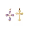 An Edwardian seed pearl and Amethyst yellow metal pendant stamped 9ct, hung from a rose gold chain stamped 9ct measuring 42 cm approx, total gross weight 3.7 grams approx. (Further details, one pearl …