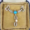 A diamond, turquoise and pearl necklace, set in yellow and white metal, the drop pendant on fine vari-coloured chain, centrally set with a turquoise, with open work diamond swag and ribbon tied bow se…