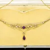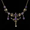 Edwardian 9ct gold amethyst and seed pearl necklace