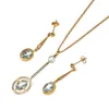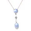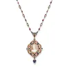 Edwardian blue zircon and split pearl pendant necklace