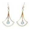 A pair of Edwardian aquamarine and pearl set pendant earrings