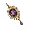 oval amethyst and seed pearl foil backed brooch