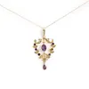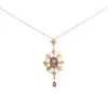 Edwardian 9ct gold amethyst and seed pearl openwork pendant and chain