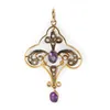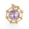 Edwardian 15ct gold amethyst and seed pearl circular openwork pendant