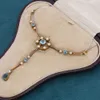 Belle Époque peridot, ruby and seed pearl necklace with back chain