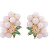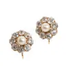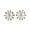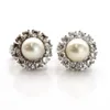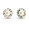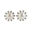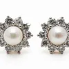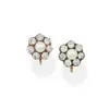 A pair of pearl and diamond cluster earrings