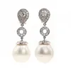 pair of 18ct white gold cultured pearl and diamond drop earrings
