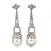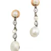 pair of Austrian Art Deco style cultured freshwater pearl and diamond drop earrings
