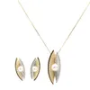 A CULTURED PEARL, ENAMEL AND DIAMOND PENDANT AND EARRING SET