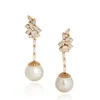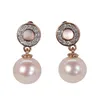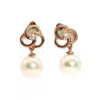 pair of 9ct rose gold diamond and cultured pearl drop earrings