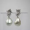 pair of cultured South Sea pearl and diamond drop earrings