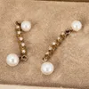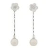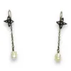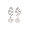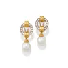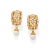 - A pair of pearl and diamond pendent earrings