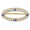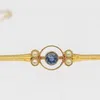 Edwardian 15ct gold sapphire and seed pearl bar brooch