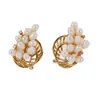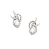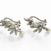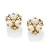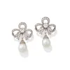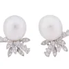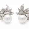 pair of pearl and diamond spray design earrings