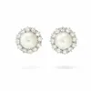 A pair of pearl and diamond set earrings