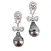 pair of Tahitian cultured pearl and diamond earrings, by Mikimoto