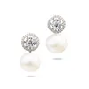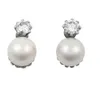 A pair of pearl and diamond earrings