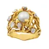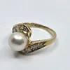 gold cultured pearl and diamond ring