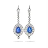 - A pair of sapphire and diamond pendent earrings