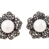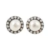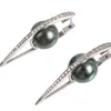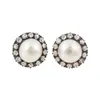 - A pair of black pearl and diamond stud earrings
