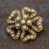 Edwardian 15 ct gold and seed pearl flower head brooch